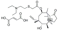 Synonyms: Tiamuline Hydrogen Fumarate; ((2-(DIETHYLAMINO)ETHYL)THIO)ACETIC ACID 8-ESTER WITH (3AS,4R,5S,6S,8R,9R,9AR,10R)-OCTAHYDRO-5,8-DIHYDROXY-4,6,9,10-TETRAMETHYL-6-VINYL-3A,9-PROPANO-3AH-CYCLOPENTACYCLOOCTEN-1(4H)-ONE FUMARATE; DENAGARD; ,10-tetramethyl-1-oxo-3-alpha,9-propano-3-alpha-h-cyclopentacycloocten-8-yles; 14-deoxy-14-((2-diethylaminoethyl)-mercaptoacetoxy)-mutilinhydrogenfumarate; 14-desossi-14-((2-dietilaminoetil)mercapto-acetossi)mutilinidrogenofumarato; 81723hfu; dynamutilin; sandoz81723hfu; Tiamulin Fumarate; (4R,5S,6S,8R,9aS,10R)-6-ethenyl-5-hydroxy-4,6,9,10-tetramethyl-1-oxodecahydro-3a,9-propanocyclopenta[8]annulen-8-yl {[2-(diethylamino)ethyl]sulfanyl}acetate (2E)-but-2-enedioate (salt); (3aS,4R,5S,6S,8R,9R,9aR)-6-ethenyl-5-hydroxy-4,6,9,10-tetramethyl-1-oxodecahydro-3a,9-propanocyclopenta[8]annulen-8-yl {[2-(diethylamino)ethyl]sulfanyl}acetate (2E)-but-2-enedioate (salt)